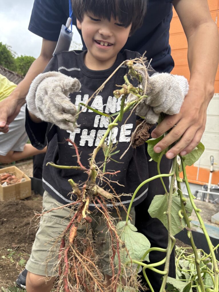 一生懸命にツルを引っ張って収穫し、みんなとっても楽しそうでした🥰