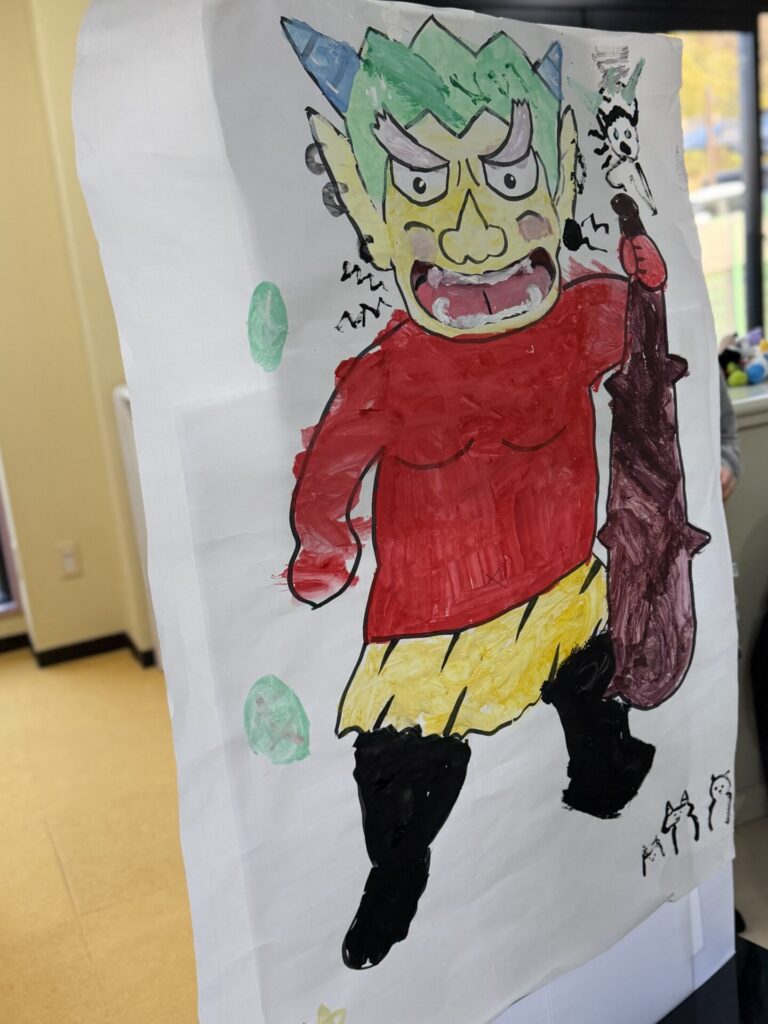目の前の鬼だけでなく、みんなの心の中にいる鬼も退治しようね!と声をかけて始めると、