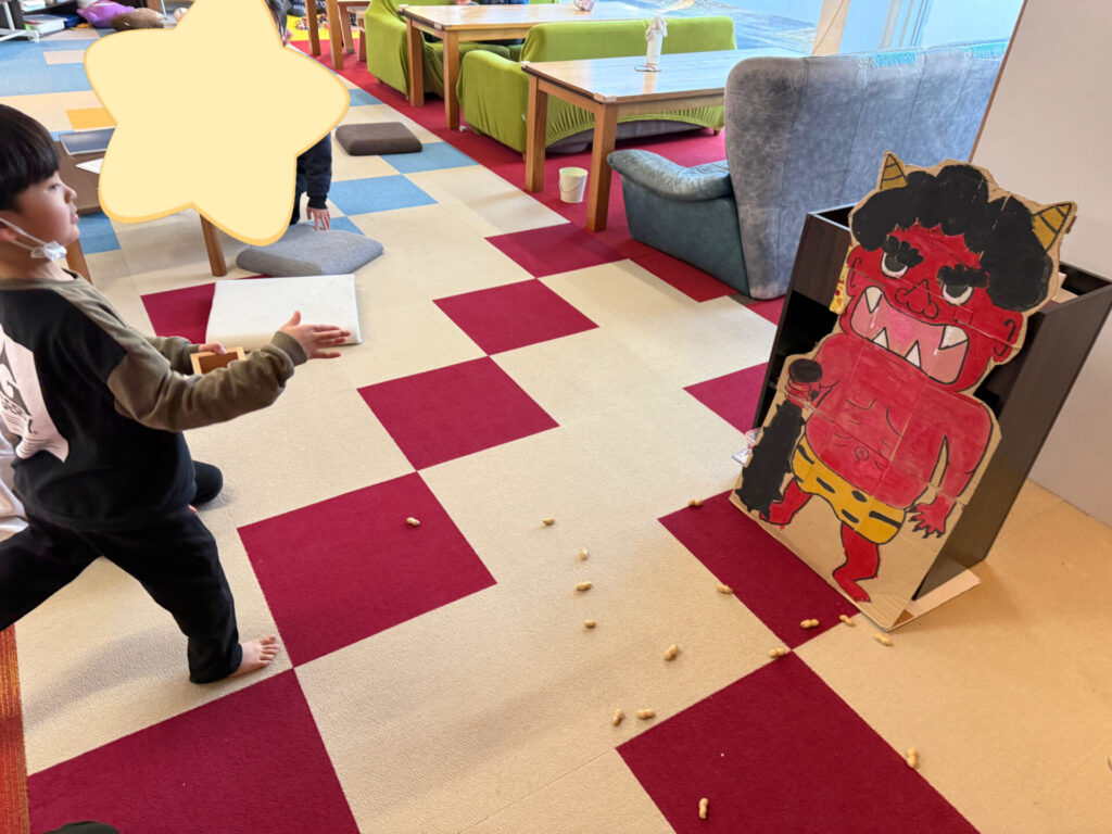 みんな大きな声で「鬼は外~!福は内~!」と言いながら真剣に投げていました✨